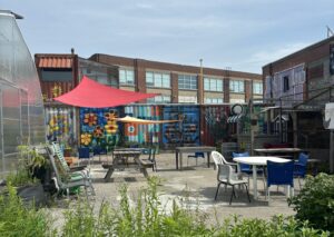 Au bout de la Blue-Green Alley se trouve la ferme communautaire, un autre projet de création de lieux soutenu par HCI. Le financement du HCI a permis d'améliorer la zone agricole en y installant une serre, une pergola, une cuisine extérieure et du matériel horticole. Cela a transformé la ferme en un espace accueillant où l'on peut acquérir des compétences pratiques, comme la cueillette d'œufs frais dans le poulailler.