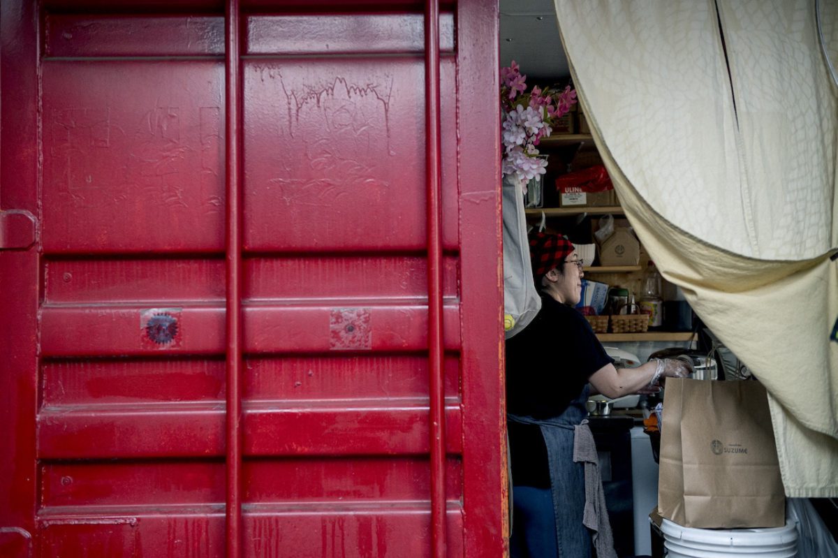 Le nom Omusubi Bar Suzume est un clin d'œil à la petite ville où Arai a grandi, Suzumenomiya, qui signifie "palais des moineaux", et Arai cherche à préparer des plats japonais réconfortants qui lui rappellent ce qu'elle mangeait chez elle lorsqu'elle était enfant. En plus des boulettes de riz, elle vend des donburi (bols de riz) et des Osechi (boîtes à bento) préparés à la demande et servis lors d'occasions spéciales. Mme Arai utilise également des ingrédients locaux et saisonniers pour proposer un menu en constante évolution, en fonction des produits disponibles sur les marchés de producteurs - une habitude qu'elle a prise à l'époque des pop-up. Malgré les difficultés liées à l'espace - il n'y a pas beaucoup de prises électriques dans ces conteneurs d'expédition, par exemple, et il peut être difficile d'utiliser plusieurs appareils à la fois - Mme Arai aime la communauté du marché 707, des écoliers locaux aux visiteurs de l'hôpital, en passant par les touristes et les Torontois qui découvrent le marché pour la première fois.
