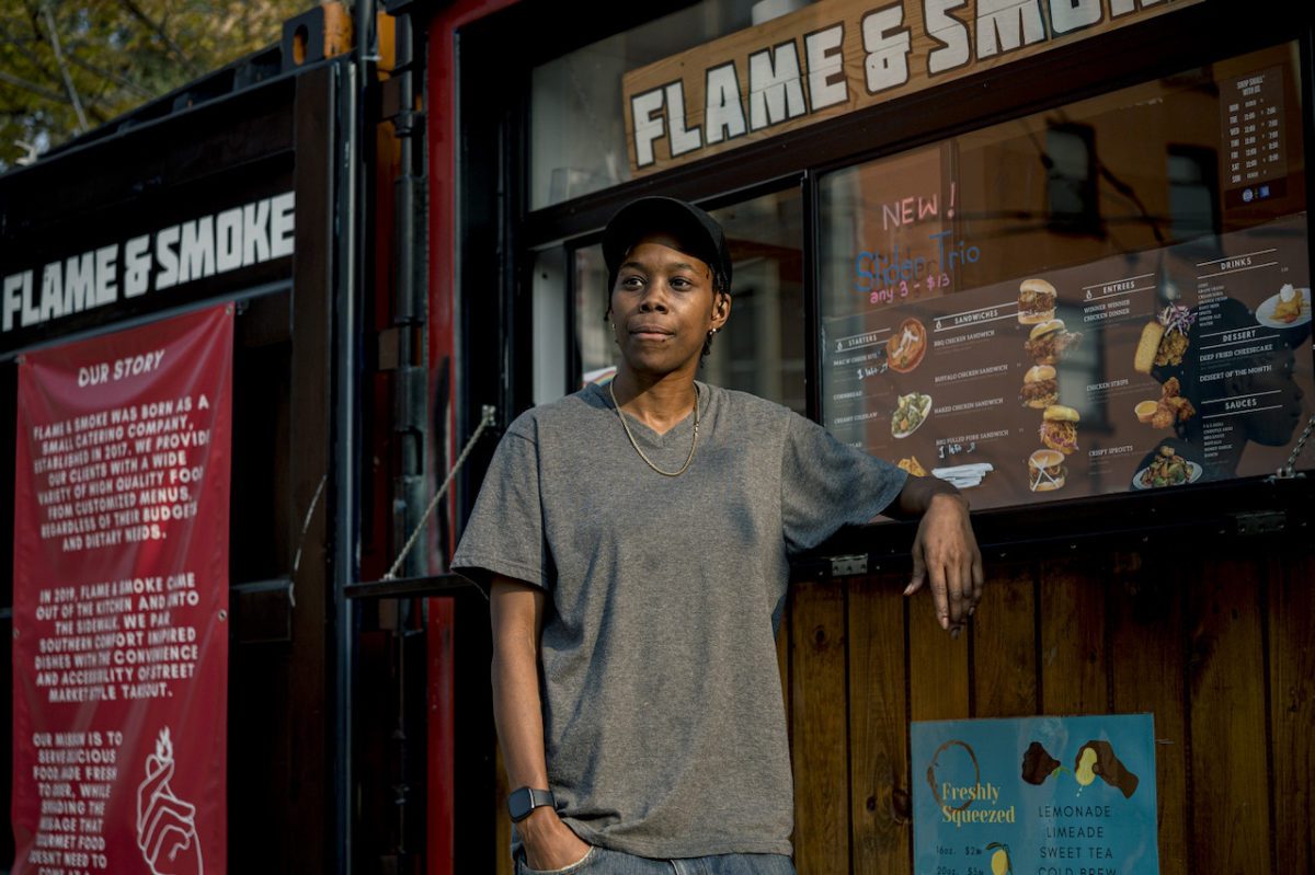 En 2019, le duo a trouvé sa réponse au Market 707. Prescott et Neverson y servent des classiques du Sud comme le gâteau au fromage frit, les macaronis au fromage et leur best-seller, le sandwich au poulet barbecue. Le but de Flame and Smoke est de proposer quelque chose qui n'est pas disponible dans la région, tout en le mélangeant et en le rendant un peu plus haut de gamme. "Nous offrons aux gens une alternative à la restauration rapide", explique M. Neverson. "C'est la qualité d'un repas dans un restaurant chic, mais que l'on peut manger dans le bus.