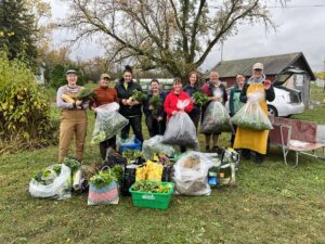 Participants avec des légumes récoltés à la ferme communautaire de la Beetbox Co-Op. Avec l'aimable autorisation de Kiana Simmons