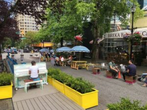 L'aménagement d'un lieu ressemble à beaucoup de choses. Vancouver, par exemple, a transformé un certain nombre de rues en places de quartier avec de la peinture, des bancs de pique-nique, des jardinières et des sièges. En 2019, une étude de Happy Cities sur ce programme Pavement-to-Plaza a révélé que les gens étaient 33 % plus enclins à vouloir rencontrer de nouvelles personnes sur les places, par rapport aux rues ordinaires situées à proximité.