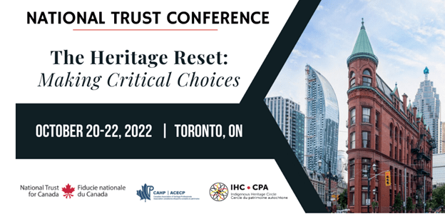 La conférence annuelle du National Trust est le plus grand événement d'apprentissage et de réseautage en matière de patrimoine au Canada. Organisée chaque année depuis 1974, la conférence du National Trust rassemble un large éventail de personnes qui œuvrent à la préservation du patrimoine canadien : des militants de la base aux élus, en passant par les professionnels, les planificateurs, les décideurs et les propriétaires de biens immobiliers. Les thèmes de la conférence ont abordé des questions urgentes pour le mouvement patrimonial canadien, notamment la revitalisation des communautés, le tourisme patrimonial, le développement durable et le changement climatique.